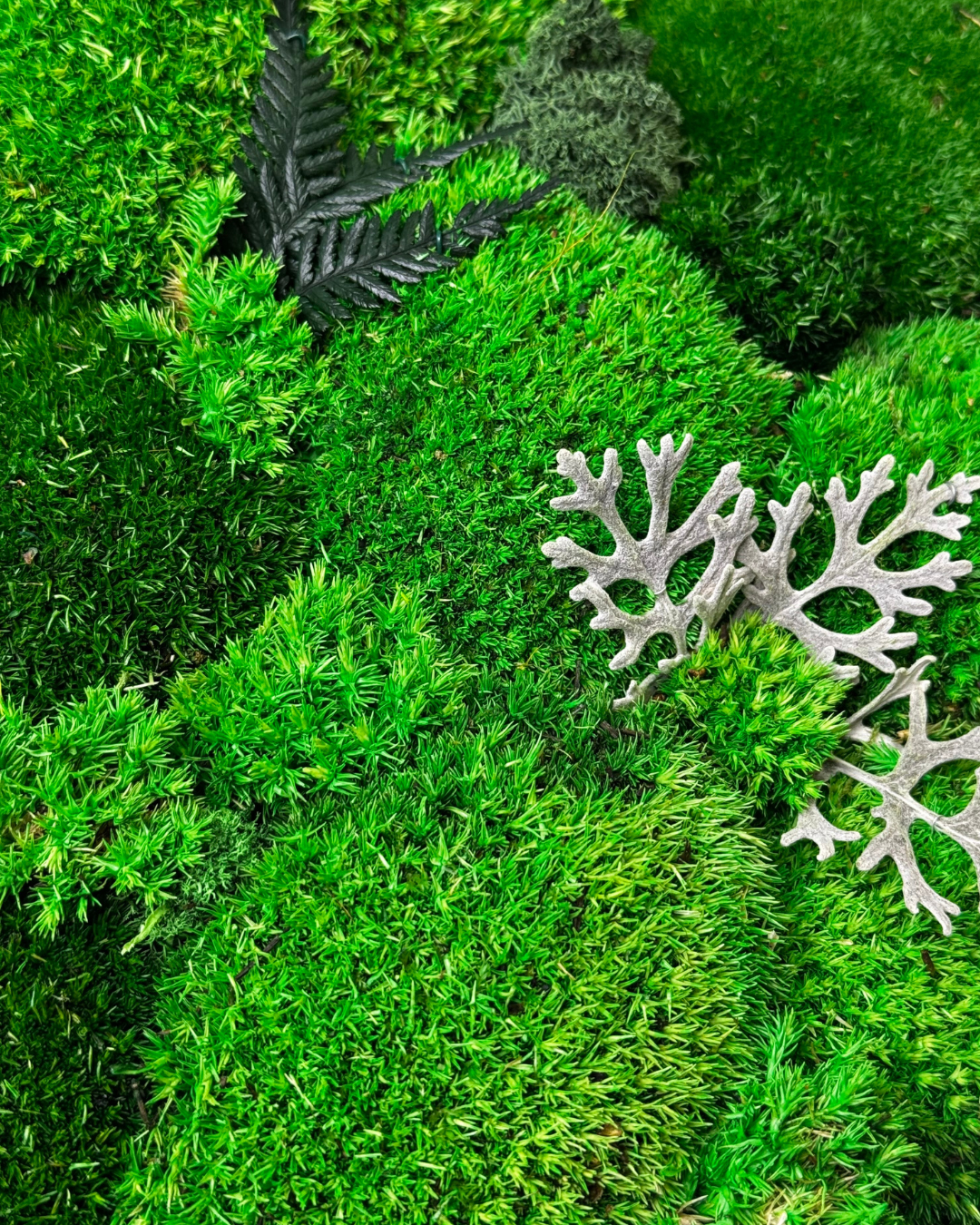 Quadro di muschio “Armonia Verde” – Una composizione elegante di muschio a cuscinetto e foglie decorative di Cineraria. Porta freschezza naturale ed eleganza senza tempo in ogni ambiente – completamente senza manutenzione.