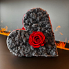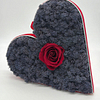 Lavender Rose Passion – cuore decorativo artigianale con rosa stabilizzata e muschio di renna conservato in tonalità lavanda, confezionato con cura e perfetto da regalare.
