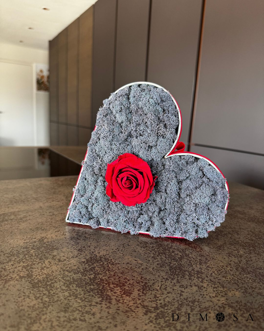 Lavender Rose Passion è un cuore decorativo realizzato a mano che combina una rosa stabilizzata di alta qualità con muschio di renna conservato nel colore lavanda. La tonalità lavanda unisce calma, leggerezza e chiarezza delicata – un colore che porta serenità negli ambienti moderni senza risultare freddo. Come muschio, il lavanda rivela una profondità silenziosa: discreto, armonioso e sorprendentemente vivo. La rosa rimane bella nel tempo e il muschio non richiede manutenzione. Il prodotto è confezionato in modo elegante ed è perfetto come regalo, decorazione da tavolo o raffinato complemento d’arredo. Misura: 200 mm