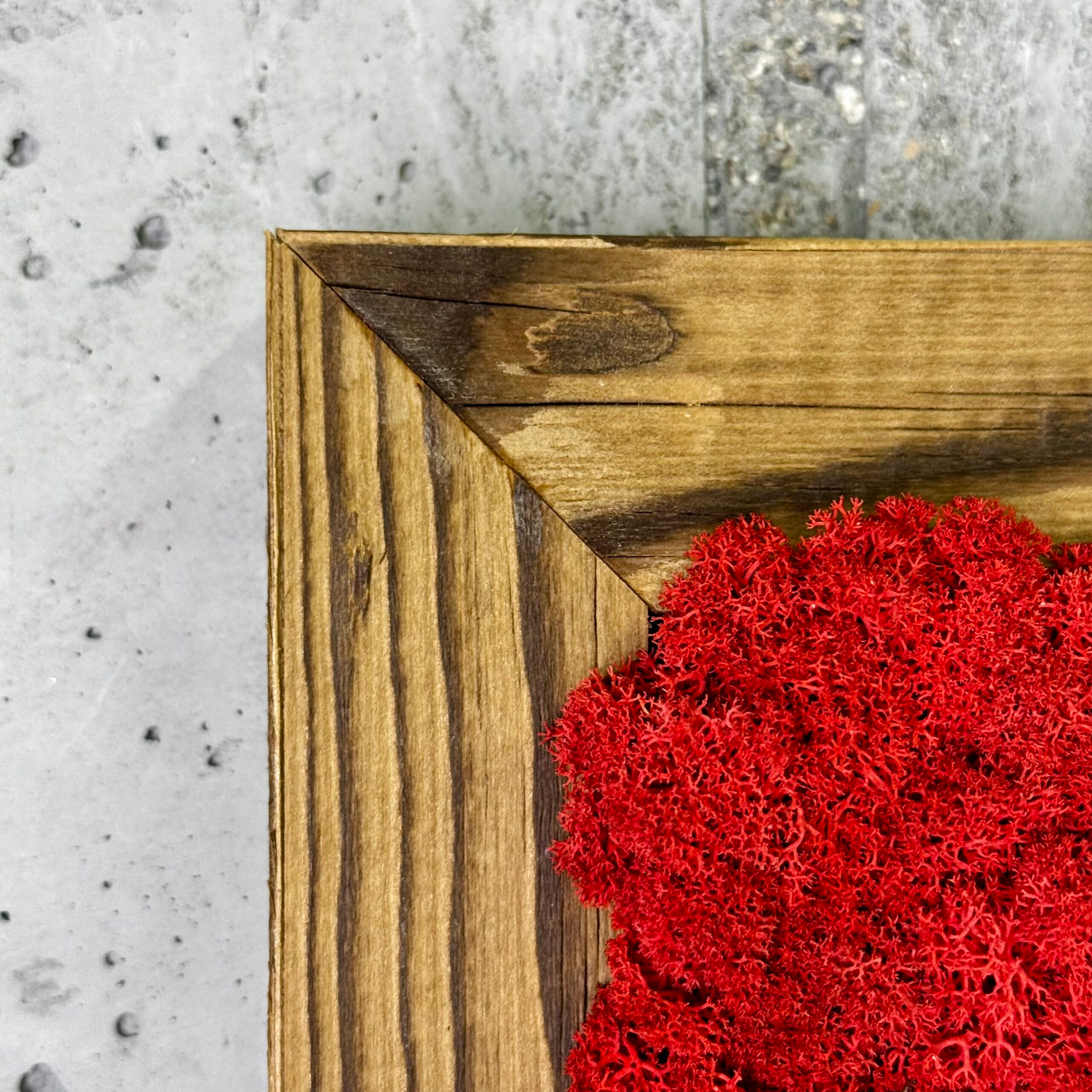 Ein Regenbogen für Ihre Wände: leuchtende Moosfarben in perfekter Harmonie, eingefasst in warmes Altholz. Kunst, die Freude und Natur vereint.