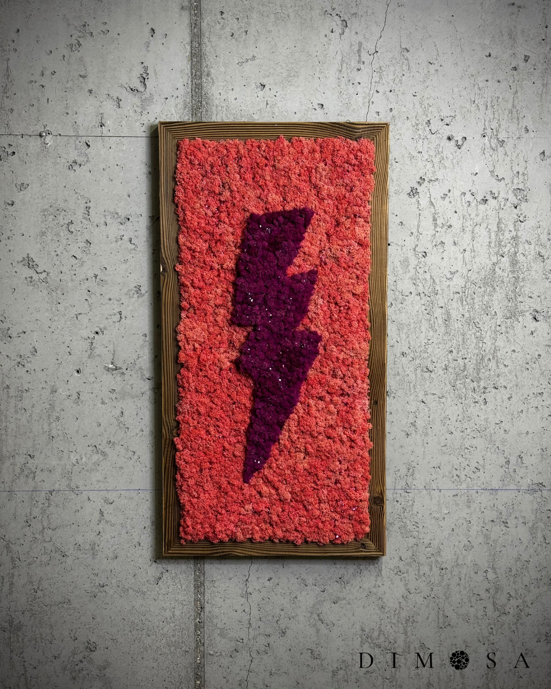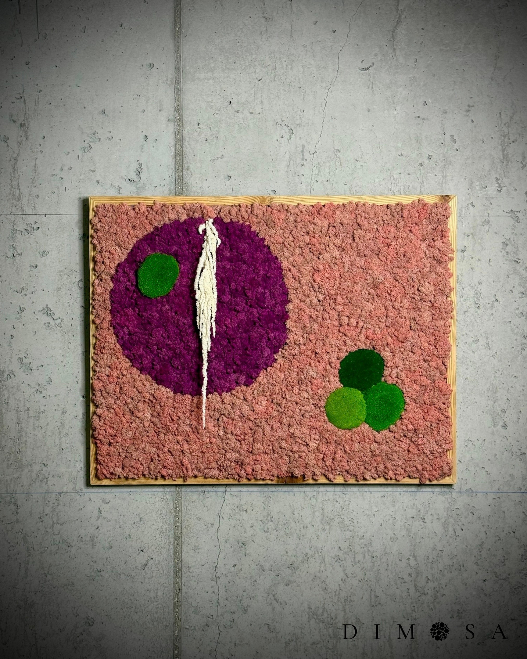 Quadro di muschio artigianale realizzato con muschio di renna nei toni del rosa e del fuchsia,…